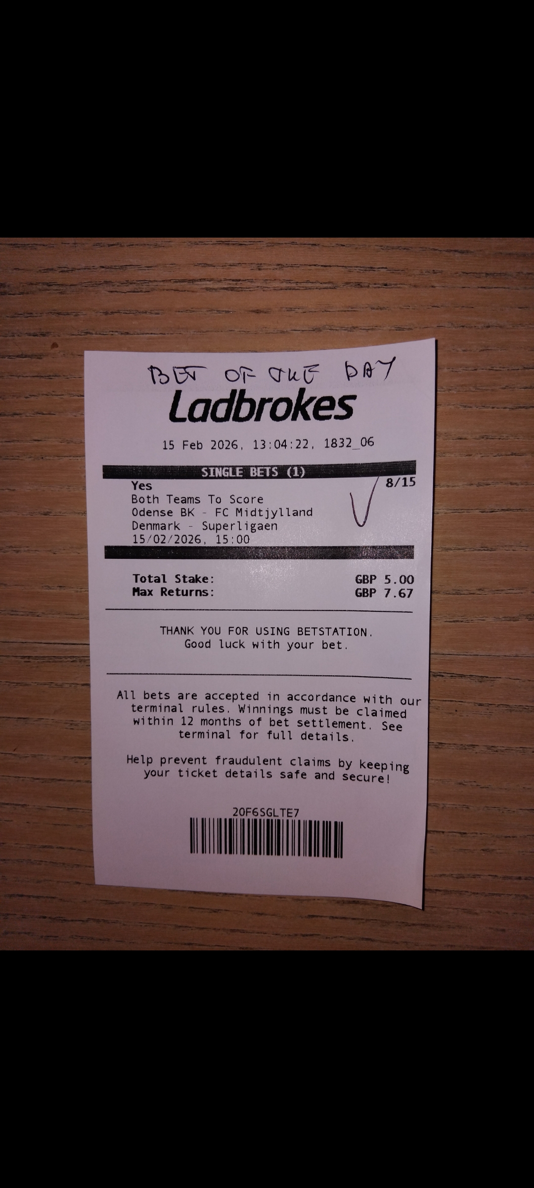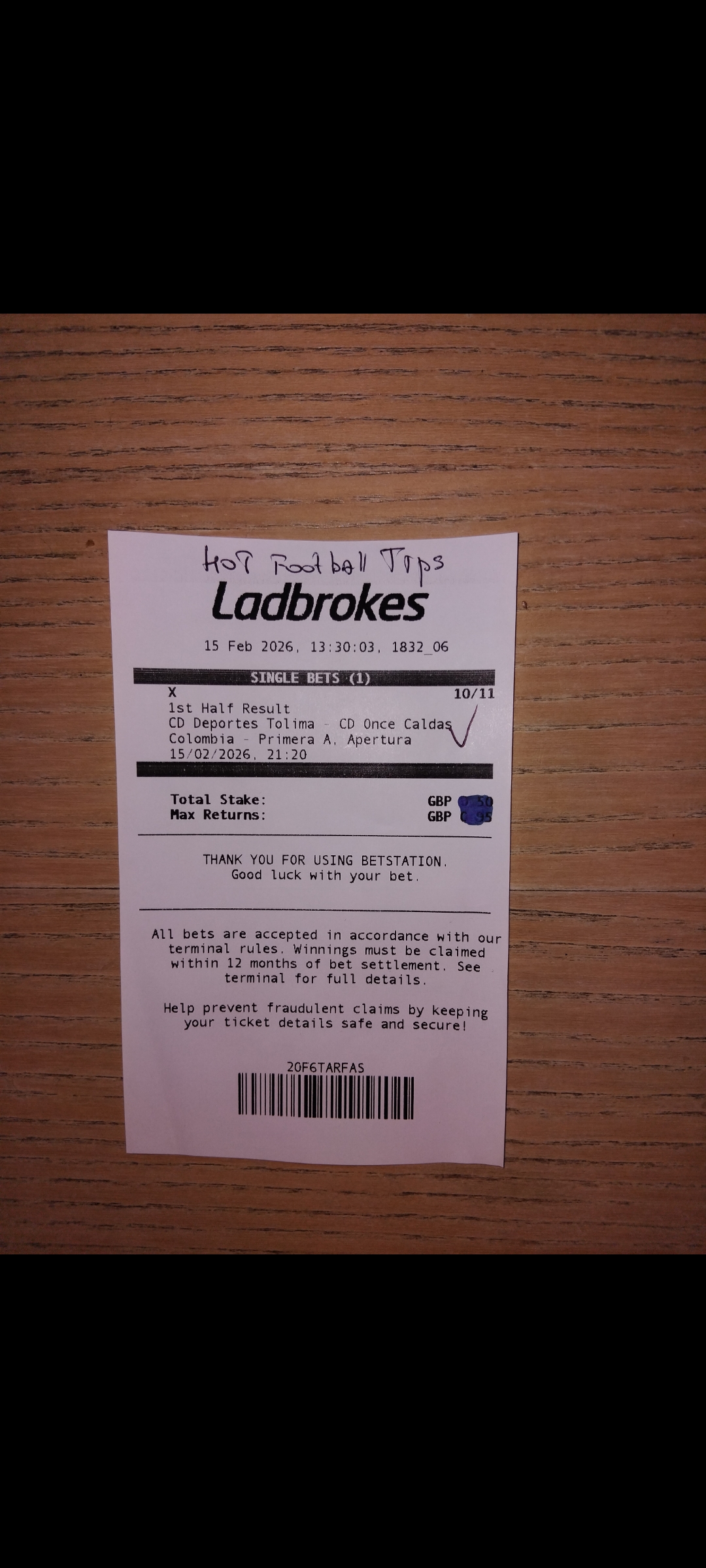 Total Stakeย ย ยฃ2.50