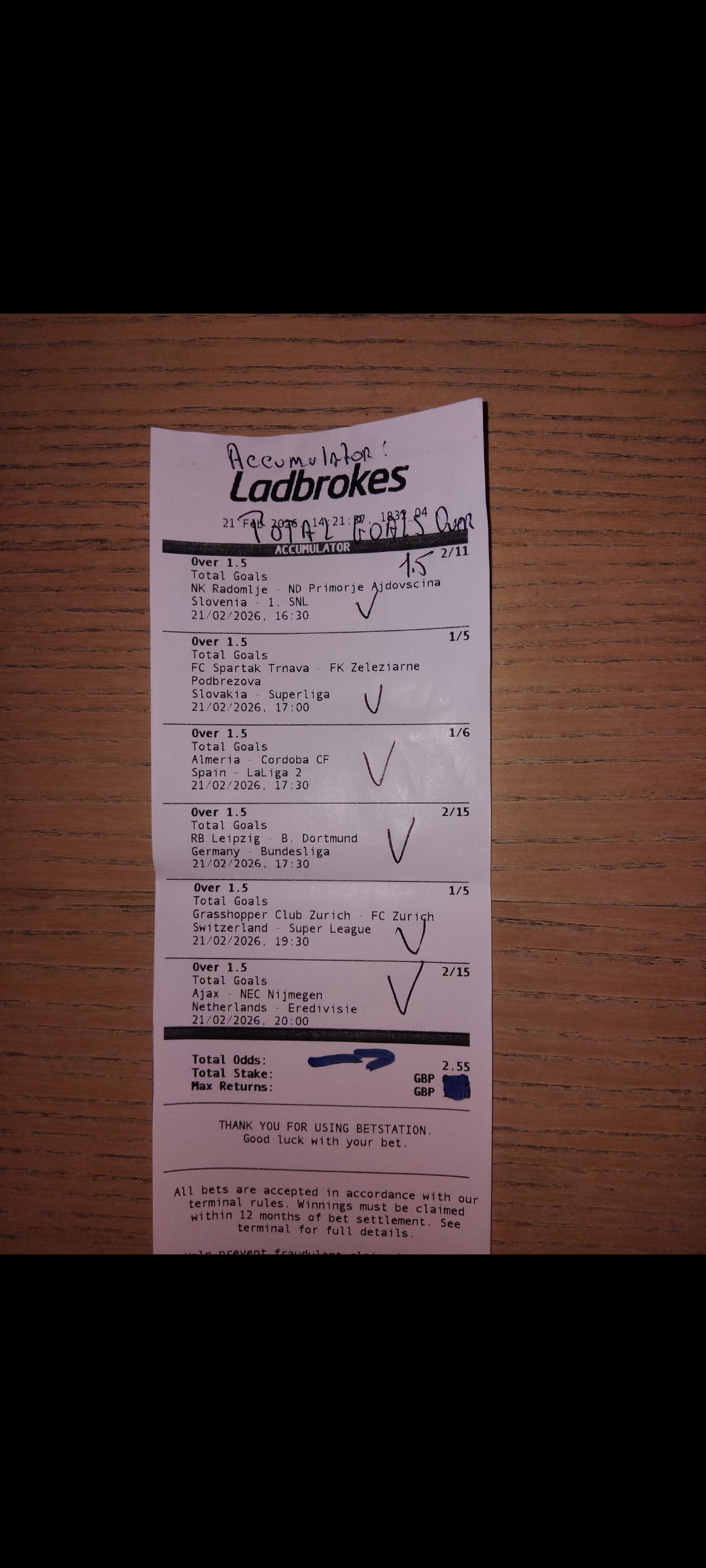 21.02.2026                    5 p.m. Slovakia 🇸🇰 Nike Liga Trnava vs Podbrezova Total Goals Over 1.5   21.02.2026         ...
