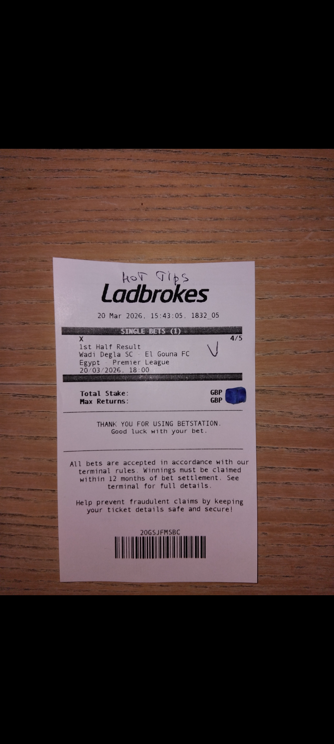 ODDS 4/5 in Ladbrokes